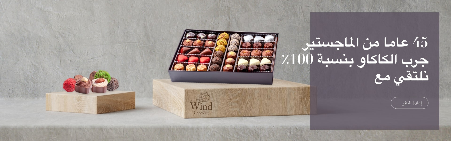 يتم إنتاج الشوكولاتة لدينا بخبرة 45 عامًا من الحرفيين و بنسبة 100٪ من كاكاو.